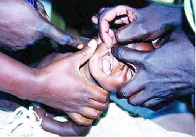 An infant is subjected to oral mutilation. Net photo