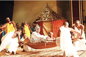 The king is carried in a litter, along with the little boy. The New Times / Plaisir Muzogeye.