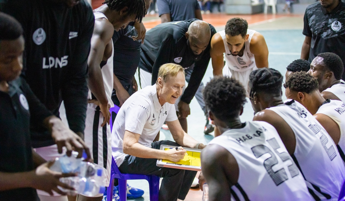 APR basketball club coach Mazen Trakh gives instructions to his players during the game.Trakh’s side beat Patriots 70-63 on Friday night, August 25, at BK Arena to lead the series 2-0 and go a win a way from advancing to the finals.. All photos by Dan Gatsinzi