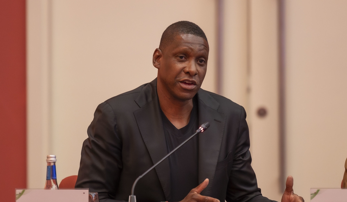 Masai Ujiri, President of the Toronto Raptors and Co-founder of Giants of Africa, speaking on Saturday, August 26 at a side event of the Nigerian Governors’ Executive Leadership Retreat on Saturday, August 26. Village Urugwiro