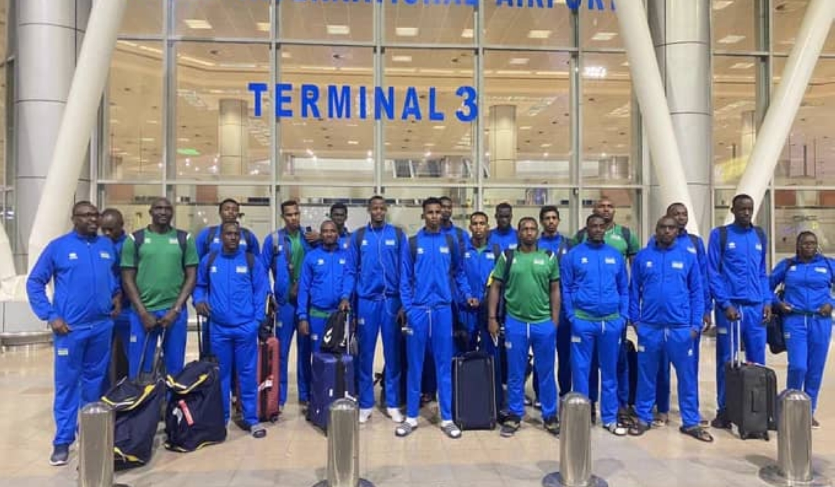 Rwanda men’s national volleyball team shortly after landing in Cairo for the 2023 African Men’s Volleyball Championship . Rwanda was drawn in Group D alongside Morocco, Senegal and Gambia-Courtesy