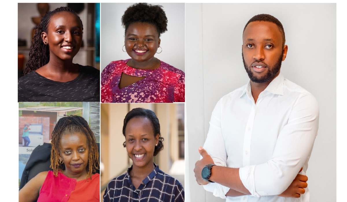(L-R) Kevine Kagirimpundu, the co-founder and CEO of UZURI K&Y, Christelle Kwizera, founder of Access Water Rwanda, Francine Munyaneza, the founder of MUNYAX ECO, Yvette Ishimwe, founder and CEO of IRIBA Water Group and Albert Munyabugingo, co-founder of the local tech solution delivery company VubaVuba, Courtesy