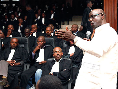 Justice minister Busingye gives a presentation during a meeting of lawyers at the Supreme Court on September 15, 2011. (File)