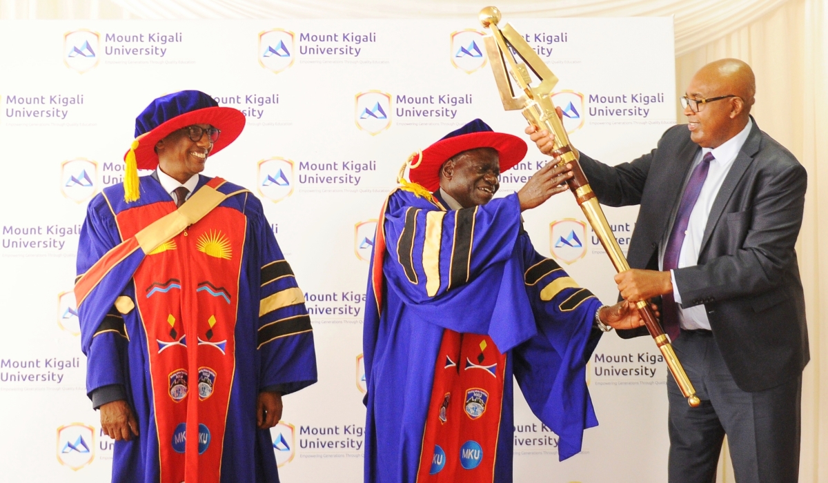 Mount Kigali University (MKU) has officially received the instruments of power from its Board of Trustees. This happened on Friday, September 15, following the earlier granting of full autonomy by the Government of Rwanda. ALSO READ: Mount Kenya University Rwanda changes name to Mount Kigali University The handover ceremony, held at the MKU campus located in Gatenga sector, Kicukiro District, was graced by the founder and Board of Trustees Chairman Prof. Simon Gicharu who handed over the instruments to MKU Chancellor Prof. Stanley Waudo who in turn handed them over to Dr. Innocent Mugisha Sebasaza, the Chairman of university governing body (Council). Dr. Mugisha then handed over to Vice Chancellor Dr. Martin Kimemia. The instruments are a mace, seal, logo, flag and the Internal University Statues and the Communique from the Government of Rwanda, officially identifying the campus as an autonomous international institution of higher learning and not a cross-border institution. The mace is a visual representation of MKU’s commitment to upholding academic integrity, tradition and pursuit of knowledge. On the other hand, the seal is the official signature of the university. It is through the seal that official documents, degrees, diplomas, and certificates are imbued with the weight of the university’s authority. The Statutes are the foundation upon which Mount Kigali University will be governed. ALSO READ: Mount Kenya University Rwanda gets accredited “This is a culmination of tireless efforts by the Board, Council, University Management and support from our students, their parents and guardians as well,” said Prof. Gicharu, a Kenyan-born international educationalist. Mount Kigali University was formerly a campus of Mount Kenya University, East and Central Africa’s largest private university. On April 20, after an elaborate process that lasted more than five years, it was granted accreditation and legal personality to operate as Mount Kigali University. “This is the first time that an institution has started as a campus and graduated into a fully-fledged university in Rwanda,” said Dr. Mugisha, adding that “Many have tried and failed.” The entry of Mount Kenya University into Rwanda, which is now Mount Kigali University, was enabled by Annexure 12 of the East African Community Common Market Protocol. The Protocol allowed mutual recognition of academic qualifications. Equally, Mount Kigali University has continued with this momentum to embrace internationalization of education. MKU is now a member of the Inter-University Council of East Africa. The internationalization drive has also seen the university recruit international faculty, students, and benchmark against some of the best universities in the world. ALSO READ: Mount Kigali University, Imbuto Foundation to build two ECD classes in Kicukiro Besides top Mount Kigali University administrators, others who attended the event were Imbuto Foundation’s representative, Mireille Musaniwabo, and Innocent Kagabo, the Registrar of the National Council of Nurses and Midwives. Kagabo described the campus as an “indispensable partner in training of nurses,’’ adding that this occasion strengthens the ongoing partnership in addressing issues such as shortage of nurses.” On the other hand, Roseanne Muregwa, an alumni of Mount Kenya University Rwanda said, “This remarkable institution has changed the course of our lives. We are proud to be beneficiaries of Prof. Gicharu’s vision.” Mount Kigali University Vice Chancellor Dr. Martin Kimemia emphasized the importance of this transition. He stated, “The institution is determined to shape its own destiny, and to provide a nurturing environment where intellectual curiosity will flourish. This will be backed up by state-of-the-art infrastructure for curricular and co-curricular activities.” ALSO READ: Why Mount Kenya University Rwanda leads in hospitality The university is constructing a hotel (Kigali Paramount Hotel) in Gatenga sector, which will offer practical training for its students from the School of Hospitality and Tourism Management. Kigali Paramount Hotel will be a regional center of excellence in Hospitality training. In addition, Mount Kigali University will soon open a University Medical Centre where its staff, students, alumni and community will receive medical services. “We have also invested about Rwf200 million to buy dental equipment in preparation to roll out Dentistry courses,” added Prof.Gicharu. During the event, the Vice Chancellor received an accreditation certificate from International Human Resource Certification Institute, enabling Mount Kigali University to start giving certification to Human Resource professionals. With the autonomy and receipt of Instruments of Power, students from Mount Kigali University will now be graduating right here in Rwanda. “I am looking forward to that day,” said Dr. Kimemia. “Our graduates will celebrate their academic milestones in the presence of their parents, guardians, friends and siblings as well.” The colorful ceremony was lit up by entertainment by Rwanda Cultural Troupe who performed the famous Intore dance.