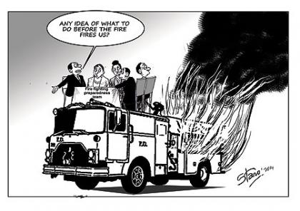 Authorities in the City of Kigali were on Monday left red-faced, as far as fire fighting preparedness is concerned, when a fire broke out in Gikondo’s industrial area.