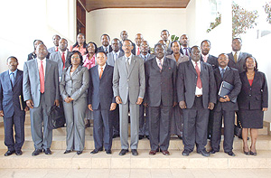 VILLAGE URUGWIRO - A high-level East African Community (EAC) delegation led by Ambassador Juma Volter Mwapachu, the EAC Secretary General, has met and briefed President Kagame on the bloc’s upcoming undertakings. Mwapachu arrived in the country Sunday with a delegation of thirteen other senior EAC officials including, Amb. Julius Onen, the Deputy Secretary General, Projects and Programmes. Amb. Richard Sezibera, Kagame’s Special Envoy to the Great Lakes region revealed that the delegation had been holding working sessions with members of the Cabinet and other senior officials.