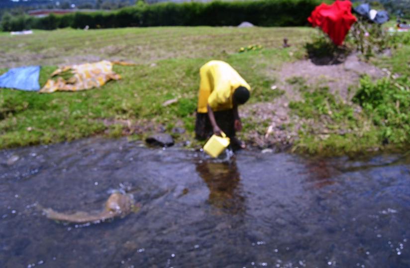 A woman fetches water from Mutobo River. Lack of clean water forces residents of Gataraga Sector in Musanze to turn to the river. (Jean d'Amour Mbonyinshuti)