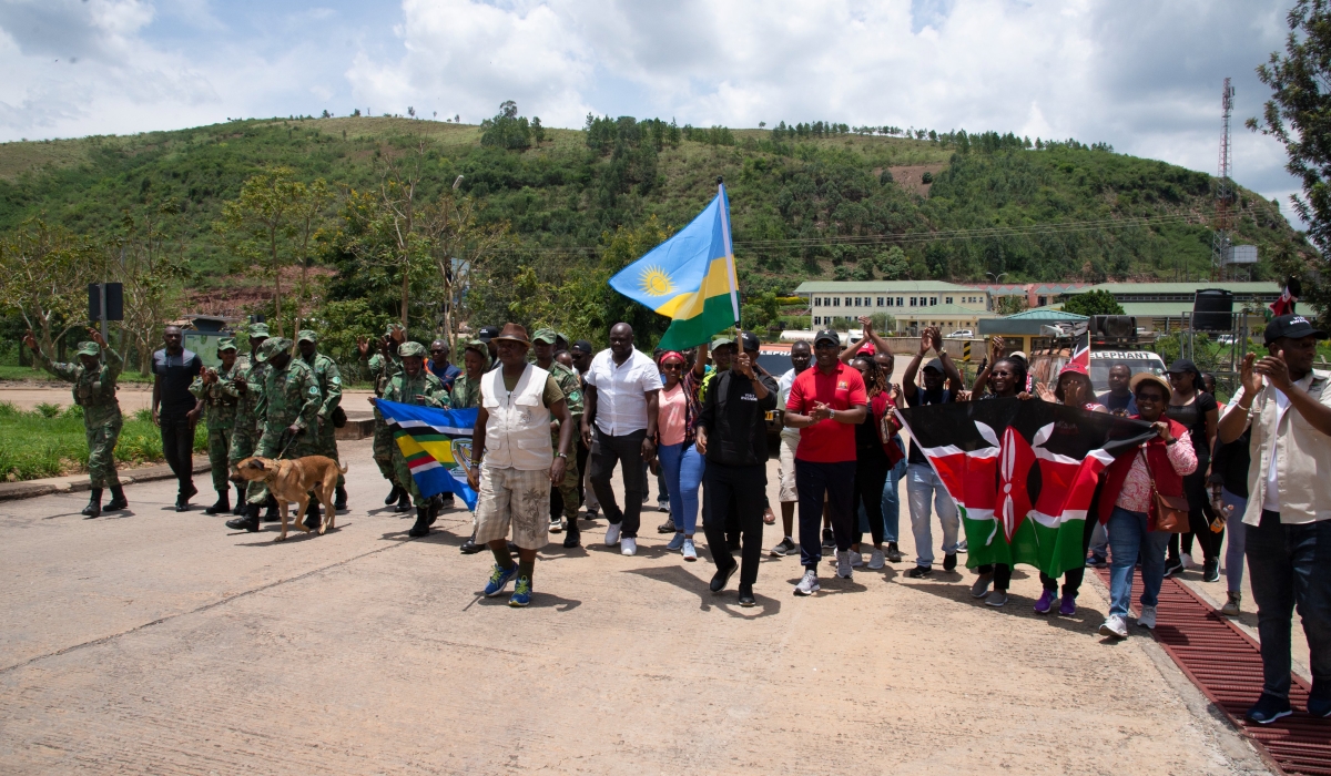 People who turn up to welcome Kenyan conservationist Jim Justus Nyamu, as he kicked off a 12-day Elephant Conservation Education and Awareness Walk across Rwanda, at Kagitumba on Friday, September 29. Courtesy