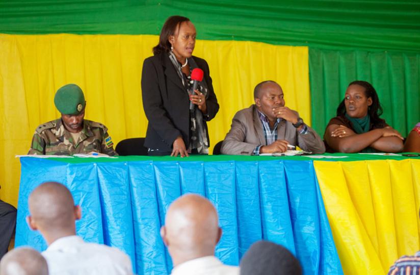 Annie Kairaba, the Director General of RISD, addresses Abunzi at Kamonyi District. (Timothy Kisambira)
