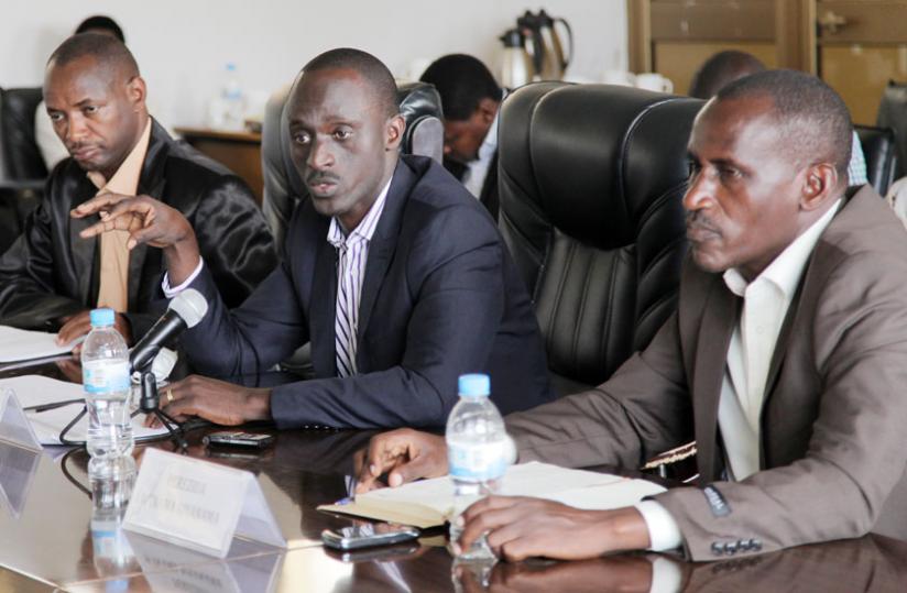 Rwamagana officials (L-R); Uwimana, Kakooza and Murenzi appear before PAC yesterday. (John Mbanda)
