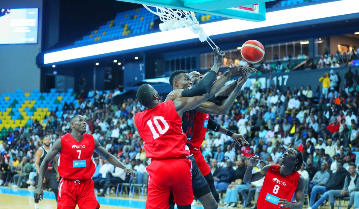 REG players vie for the ball with Patriots' during the game at BK Arena on Wednesday. REG and The Patriots, on Sunday, September 18, will be up against each other in game five. / Photo: Dan Nsengiyumva
