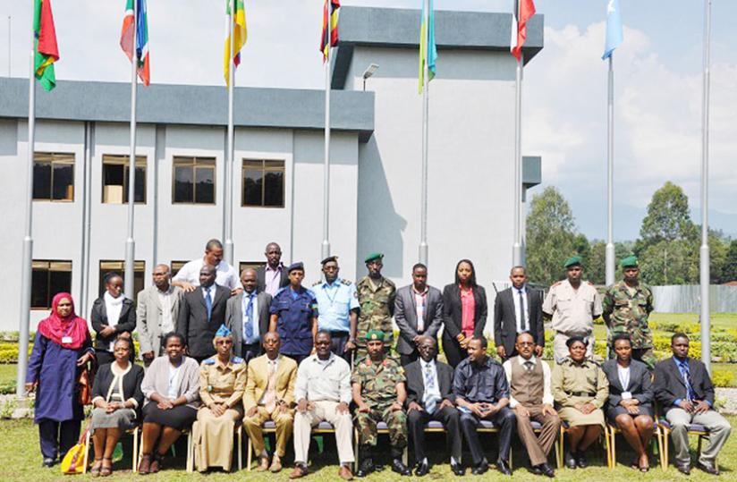 Some of the participants and officials in group photo at Rwanda Peace Academy.rn(Jean du00e2u20acu2122Amour Mbonyinshuti)