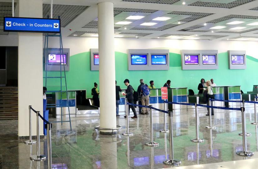 Check-in counters at the newly-refurbished departure section of Kigali International Airport. (J. Mbanda)