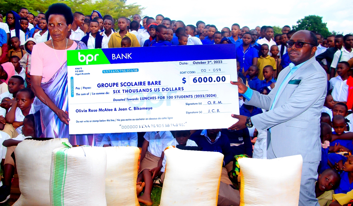 Groupe Scolaire Bare (GS Bare), a 12-year basic education school in Mutendeli sector, Ngoma District, in Eastern Province received $6,000 (approx. Rwf7 million) to support the school’s feeding programme, thanks to a GoFundMe fundraising co-led by Olivia McAtee, a Wartburg College alumnus, and Jean Bikomeye, a Rwandan Public and Community Health PhD Candidate at the Medical College of Wisconsin. ALSO READ: Rwandans in diaspora boost drive to light up vulnerable households The duo met in the USA during their studies. The genesis of the fundraising to support the lunch programme was a visit to the school by a delegation of Wartburg College students and alumni on May 19, 2023. The visit was a much-anticipated reward for the students who were at the end of an 18-day learning trip tour in Rwanda, during which the students met and interacted with President Paul Kagame in his office at Village Urugwiro on May 21. Bikomeye, a native of Ngoma District, came up with an idea to mobilise funds to support children who cannot afford school feeding contributions. Father Jean Damascene Maniraho, the school’s headmaster, had told the Wartburg scholars that some of his students come from families that struggle to afford the $20 per term for lunch fees due to financial limitations. ALSO READ: Education Ministry calls for parents’ involvement in school feeding programme According to the Ministry of Education, the government provides 90 per cent of the funding for the school feeding programme, while the role of parents is only 10 per cent for pre-primary and primary levels. For secondary students, the government provides 15.7 per cent and parents contribute 84.7 per cent. McAtee said her family, church and friends were very supportive of the fundraising idea. She said she was invited by the church’s preacher to speak to the members of the Mt. Vernon United Methodist Church in her hometown of Stuart, Iowa. Members of the church played a big role in mobilising the contributions. “The donation we have received is enough to support over 100 students from families with financial limitations for the entire 2023/2024 school year,” said Father Maniraho. McAtee stated: “It is only with the support and positive influence of these donors that this dream was made possible. Bikomeye created the idea, I created the GoFundMe link, and countless people created the successful outcome.” “We are very grateful for GS Bare to have good partners supporting us. Our children will now focus on their studies in full tranquillity,” said Marcel Nzabonimpa, one of the parents who is a caretaker of three orphaned children. Donat Nyirimpeta, Education Inspector at Mutendeli Sector, said the support is a boost for the school feeding programme. “This support covering school feeding fees for 100 students is highly appreciated as both the government and parents continue working hard together to provide nutritious food to all students,” he said. The cash donation was accompanied by over 2, 000 kilogrammes of dry beans, all locally produced to support not just GS Bare, but also local farmers.