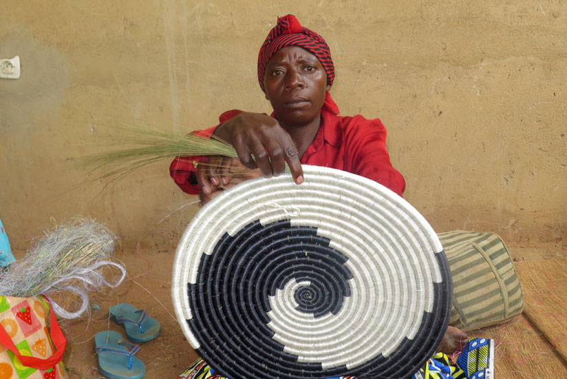 A woman about to complete one of the most expensive basket that goes up to Rwf 100,000. (Stephen Rwembeho)