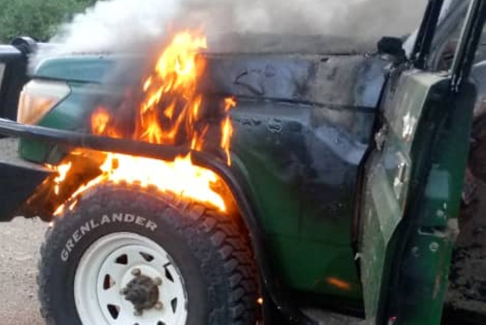 A tourist car that is suspected to be burned by the DR Congo-based Islamist ADF militia in Uganda’s Queen Elizabeth National Park on Tuesday, October 17. According to the spokesperson of Uganda Police Force, Fred Enanga, two foreigners and a Ugandan citizen were killed. Courtesy