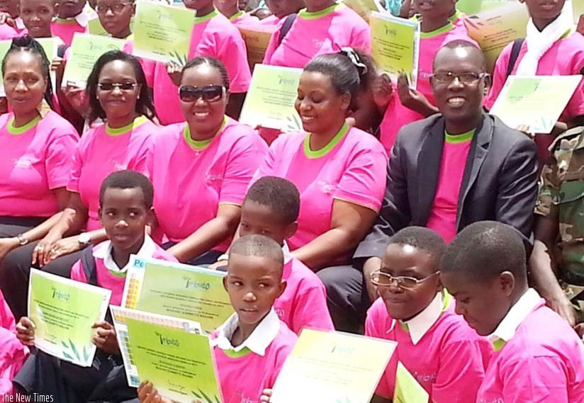 Some of the girls show their certificates in a group photo with Imbuto officials. Courtesy.