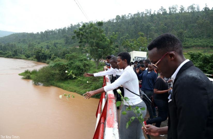 Students from different schools around East Africa commemorate the 1994 Genocide against Tutsi by putting flowers in Nyabarongo river last week. (John Mbanda)