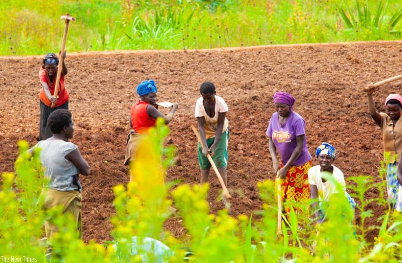 Farmers in Ruryaraya in Rwamagana District till their land. (Timothy Kisambira)