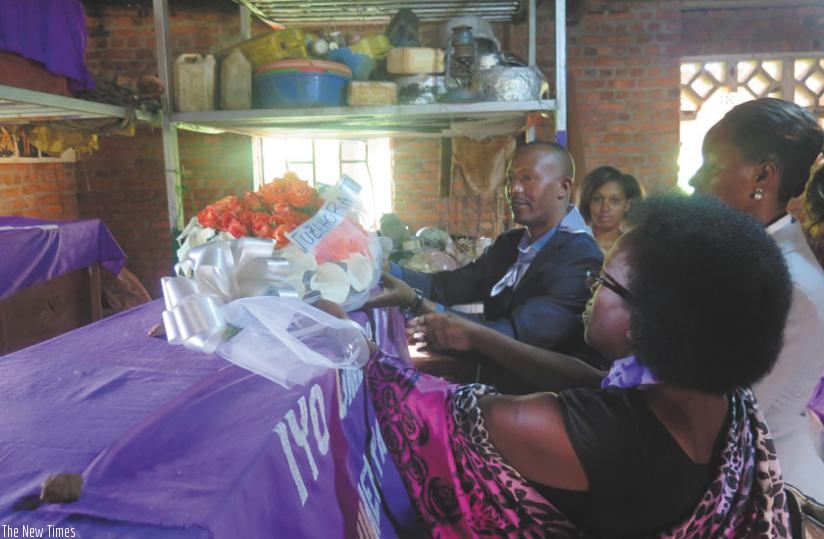 Seka, accompanied by other members, lays a wreath in remembrance of Genocide victims on Friday. Forwarders will sponsor 10 survivors for a 6-month TVET course. (Ivan Ngoboka)