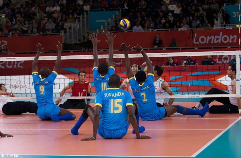 Rwanda men's sitting volleyball team, in action against Morocco at the 2012 London Paralympic Games. (Courtesy)