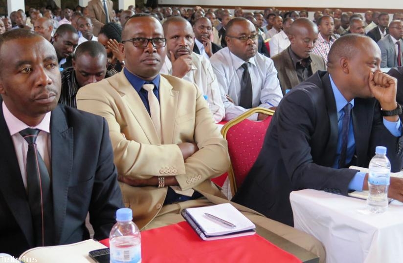 Umurenge SACCO members meet in Huye District last Thursday. (Emmanuel Ntirenganya)