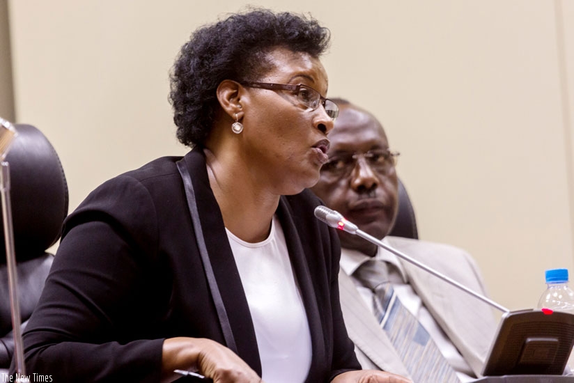 Speaker of Parliament Donatille Mukabalisa (L) addresses to lawmakers as her deputy Abbas Mukama, looks on yesterday. (Timothy Kisambira)