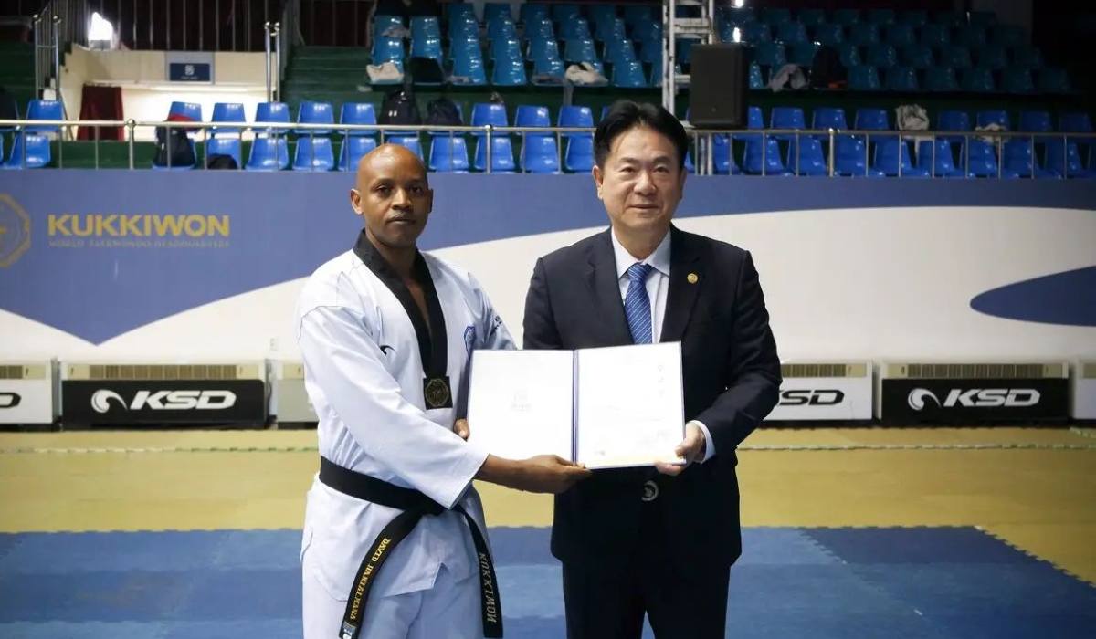 Rwandan neurosurgeon, Dr. David Hakizimana, was recognized as the best student and performer at the 2023 Global Taekwondo Master Training Programme. READ ALSO: Meet the neurosurgeon, taekwondo champion nicknamed ‘Made in Rwanda’ Held at the World Taekwondo Federation headquarters in South Korea, the training programme brought together Taekwondo masters from different countries around the world. They delved into various aspects of the game, including Kyorugi (fighting) and Poomsae (showcasing techniques). With his unwavering commitment to self-improvement, Hakizimana who is the President of the Rwandan Taekwondo Federation (RTF), honed his skills and gained invaluable insights to share with taekwondo enthusiasts worldwide. READ ALSO: Korea donates equipment worth Rwf20m to Taekwondo federation Speaking to Times Sport, Hakizimana emphasized the importance of studying and understanding the game. He said: Anyone who wants to continue playing has to study first. I now have two more trainings left. “It is a course where we learned everything necessary in Taekwondo, including the teaching of the mentality and concept of the game. Now I can teach Taekwondo anywhere in the world. As a proud representative of Rwanda, Hakizimana expressed his gratitude for the opportunity to train and excel on an international platform. He believes in the power of sharing knowledge and intends to teach taekwondo anywhere in the world, spreading the passion and expertise he acquired during this transformative experience. I was lucky to be presented with a certificate by the World Taekwondo CEO, Choi Young Ryul, himself. I am proud of Rwanda where I trained for the first time and did well. What I have been given, I must share with others.