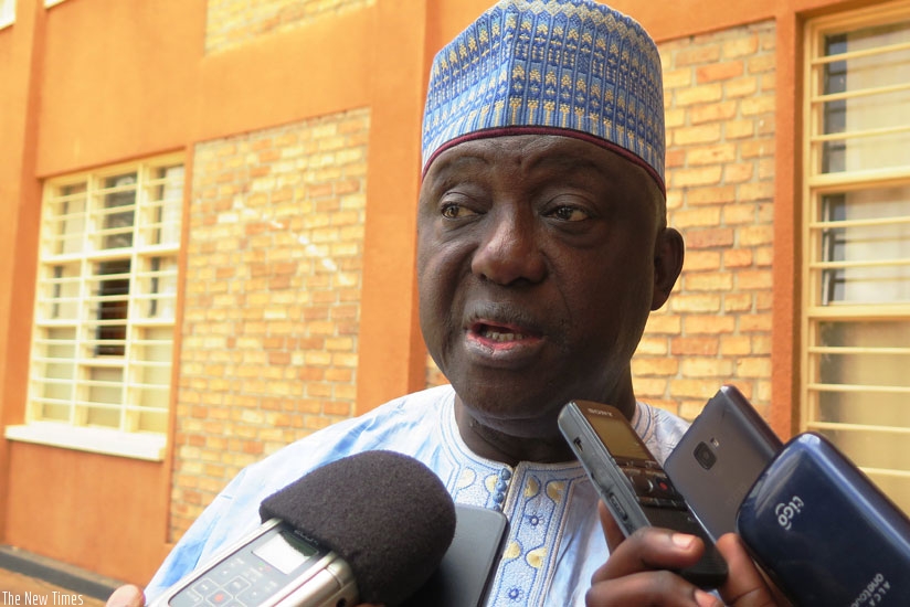 Kabele speaking to journalists in Huye District on Wednesday. (Emmanuel Ntirenganya)