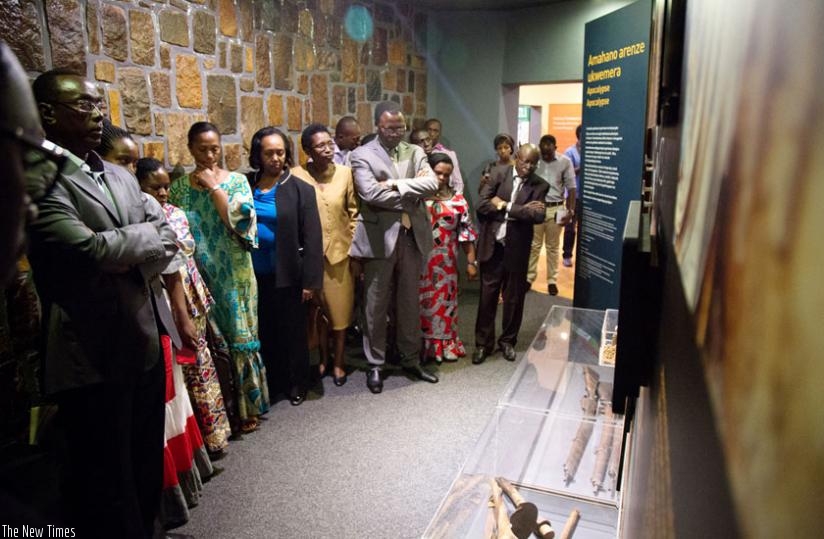 Senators during a visit of Kigali Genocide Memorial Centre look at some of the weapons that were used during the 1994 Genocide against the Tutsi. (File)