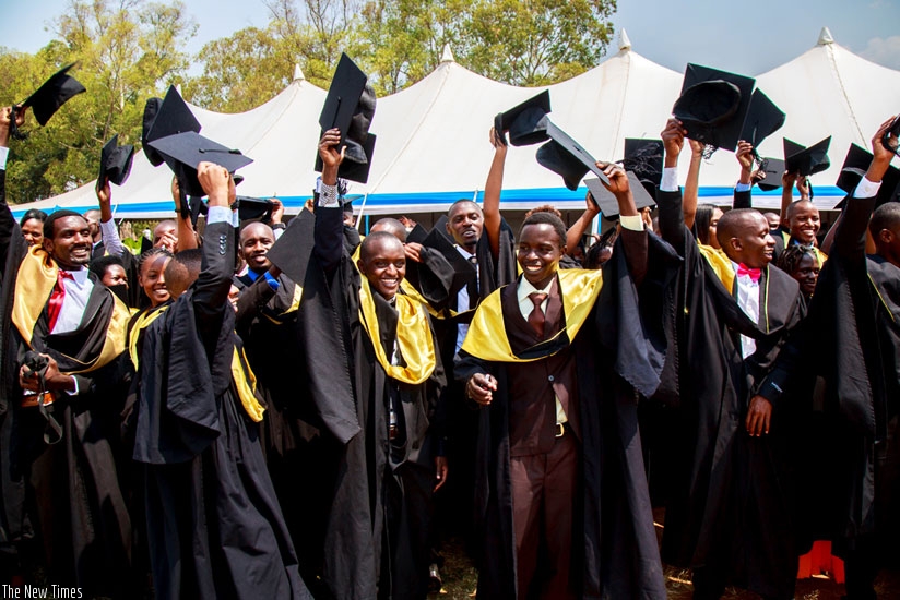 University of Rwanda students celebrate at a recent graduation ceremony. (Timothy Kisambira)