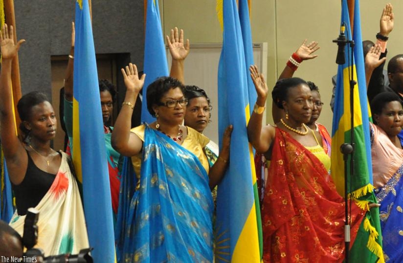 Women parliamentarians swearing. Women make up 64% of parliament in Rwanda. (File)