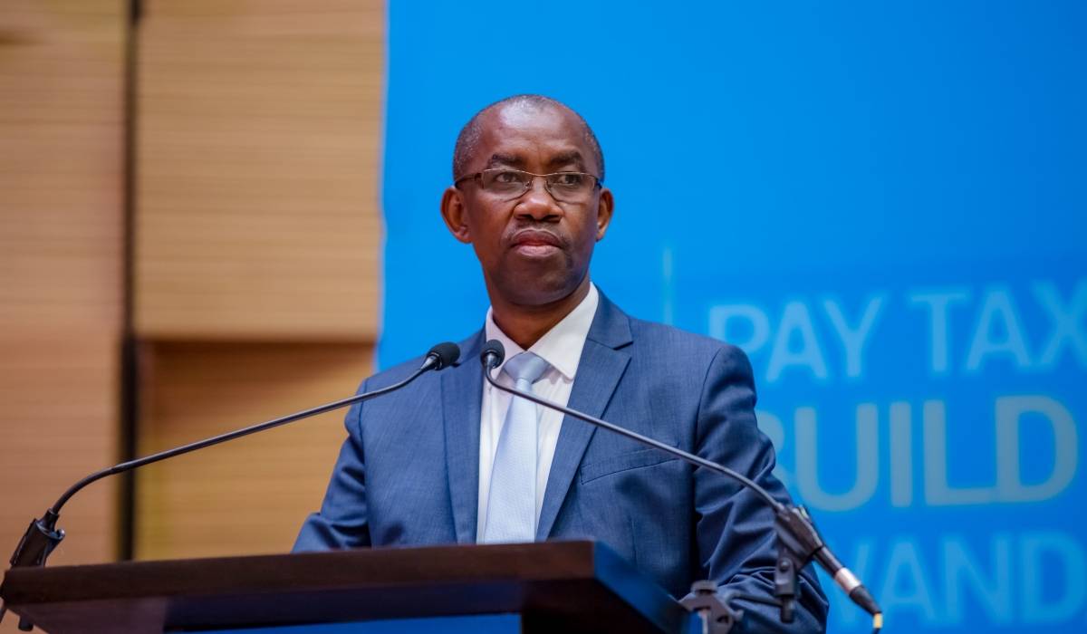 RRA Commissioner General, Pascal Bizimana Ruganintwali addresses an event last year. While appearing before PAC on September 23, the Commissioner General said that Consumers could start getting a share of the 18 per cent value-added tax levied on taxable goods and services. File