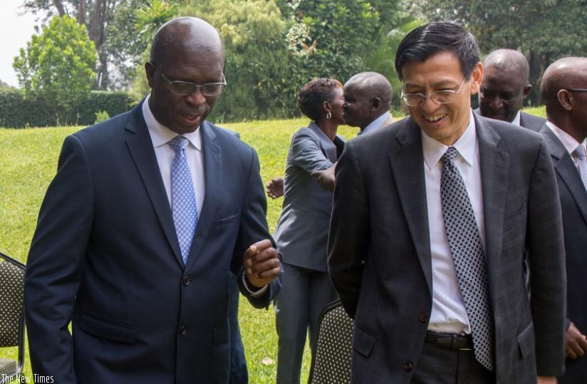 Premier Murekezi chats with Shenggen Fan, the director-general of International Food Policy Research Institute, on the sidelines of Compact2015. (Doreen Umutesi)