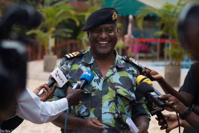 Lt Col. Saeed, the head of maritime cell at East African Standby Force, speaks to the media in Kigali, yesterday. (Timothy Kisambira)