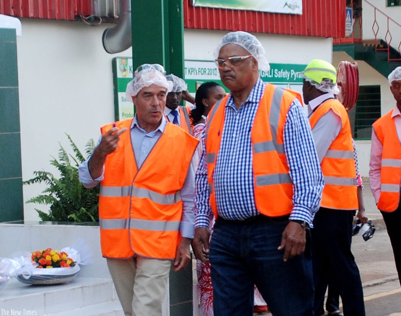 Hall (L) chats with Rev. Jackson during his tour of the plant on Tuesday. (Courtesy)