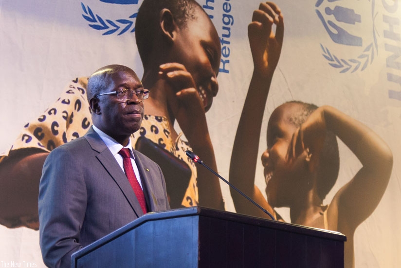 Prime Minister Anastase Murekezi gives his remarks during the World Refugee Day celebrations in Kigali on Monday. (Timothy Kisambira)
