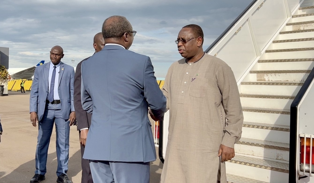 Senegal's President Macky Sall arrives at Kigali International Airport ahead of the inauguration of BioNTech Africa, a cutting-edge manufacturing facility for mRNA-based vaccines on Monday, December 18. PHOTO BY RBA