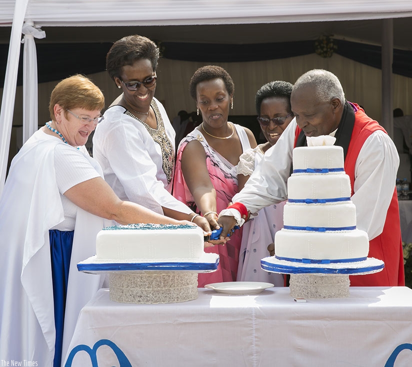 The First Lady, Jeannette Kagame, joins Mothers’ Union Worldwide president, Lynne Tembey (left); Gender and Family Promotion minister Dr Diane Gashumba (3rd right); Mothers’ Un....