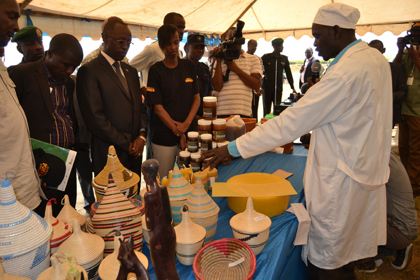 Munyakazi explains how modern beekeeping helped them improve lives thanks to revenue sharing scheme. / Jean d'Amour Mbonyinshuti.