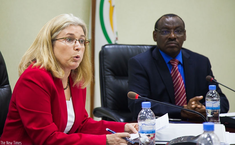Redifer speaks as Minister Gatete follows during the meeting in Kigali yesterday.rn (Photos by Nadege Imbabazi)