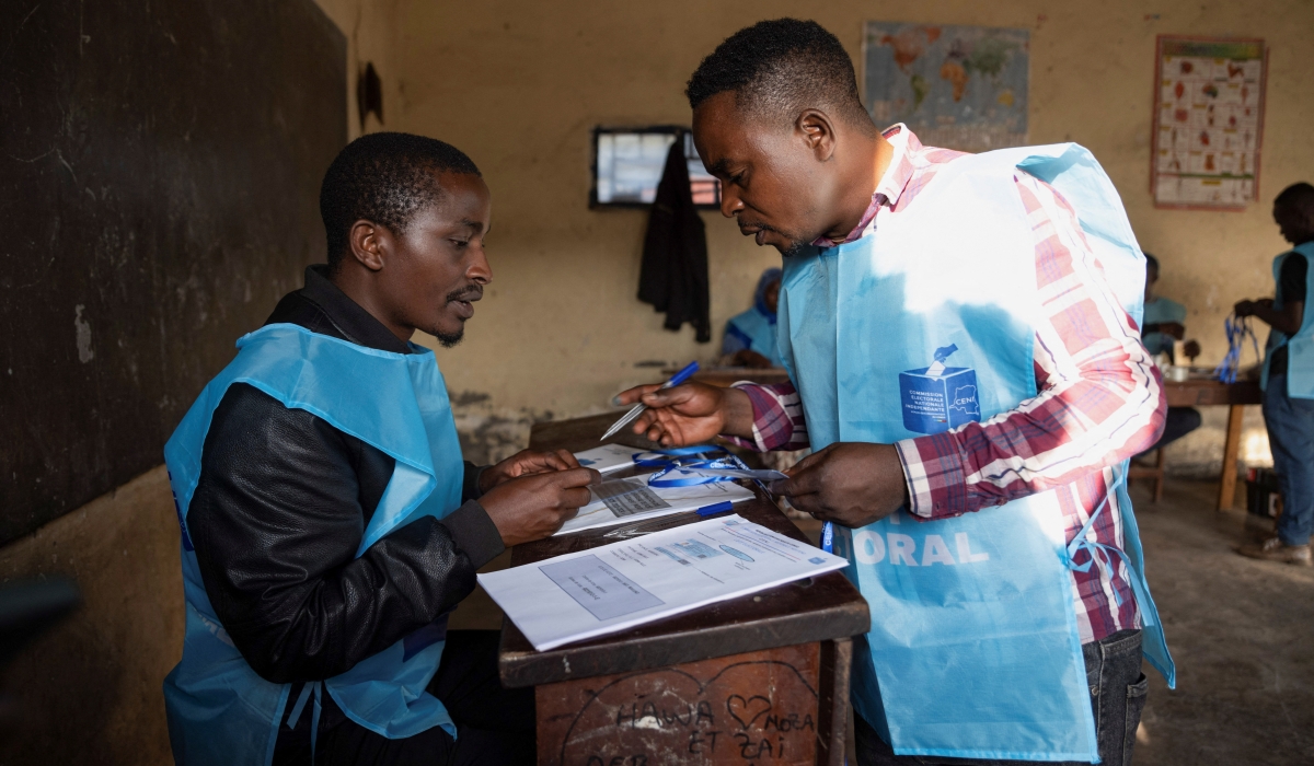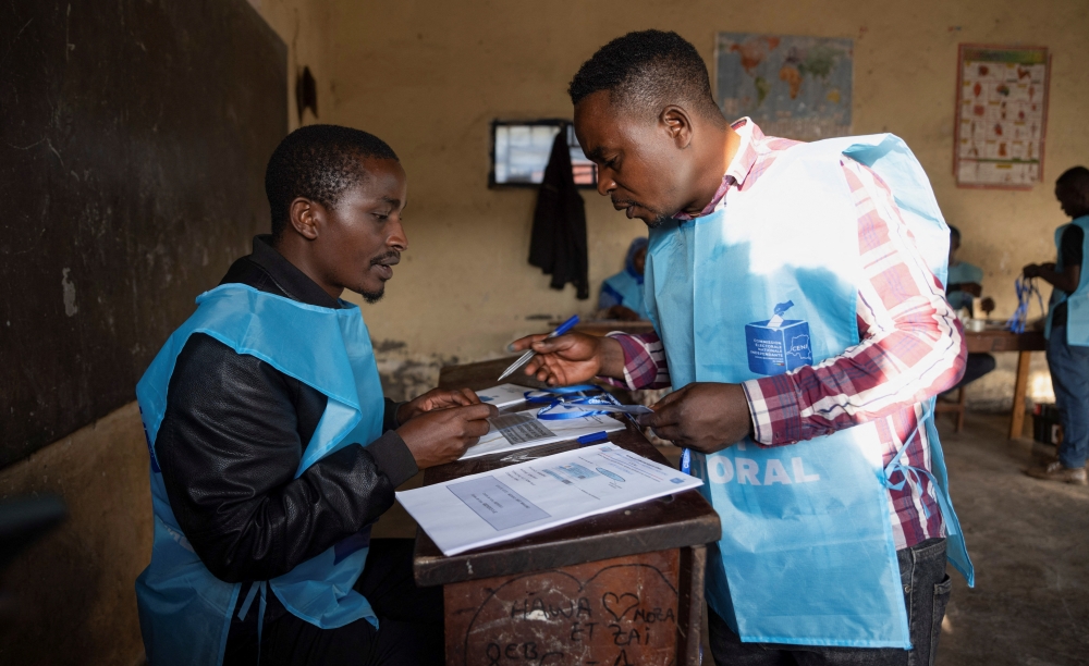 Independent National Electoral Commission (CENI) agent checks electoral materials at the Mavuno polling centre on the day of the presidential election in Goma, North Kivu province of the Democratic Republic of Congo December 20, 2023. REUTERS/Arlette Bashizi