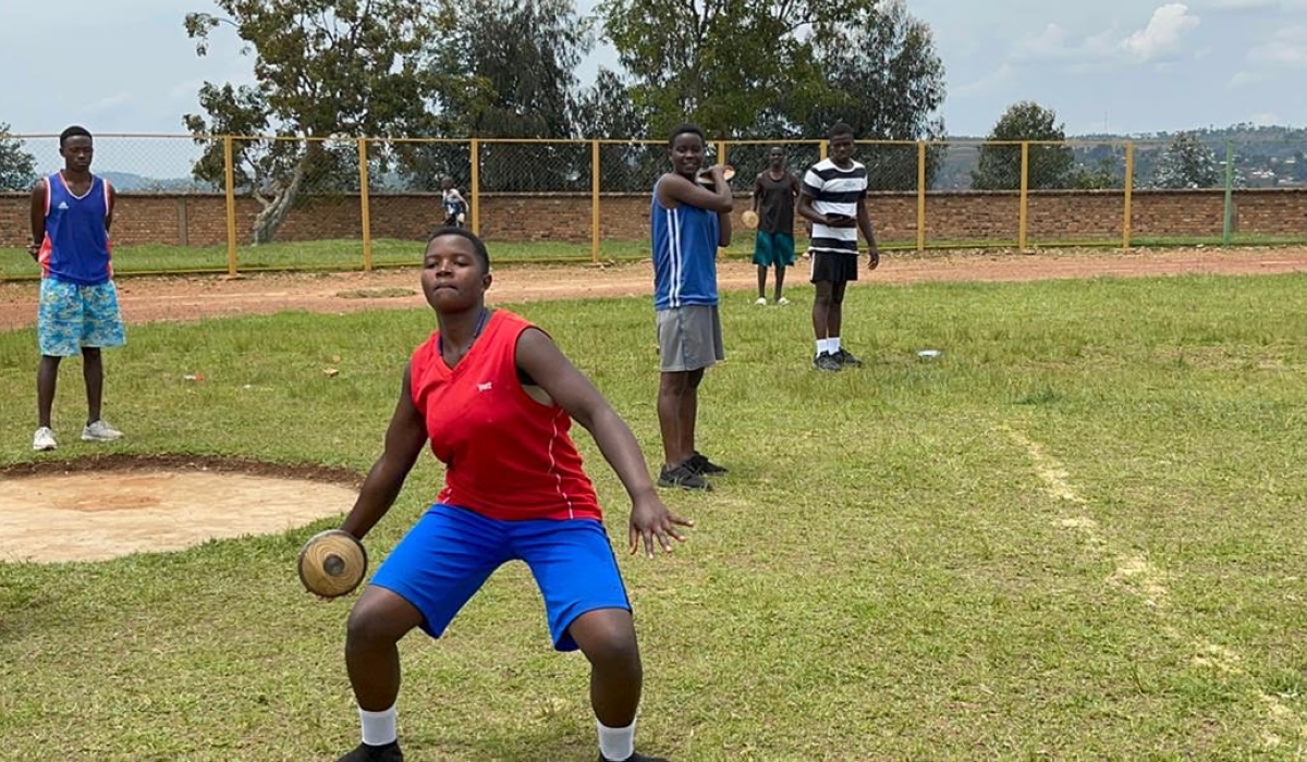 A young female athlete prepares to throw a disc during the just-concluded training camp in Gicumbi. The Rwanda Athletics Federation (RAF) president Lt. Col (Rtd) Lemuel Kayumba believes their new talent search could help them produce new athletes with potential to win medals on the global stage.Courtesy