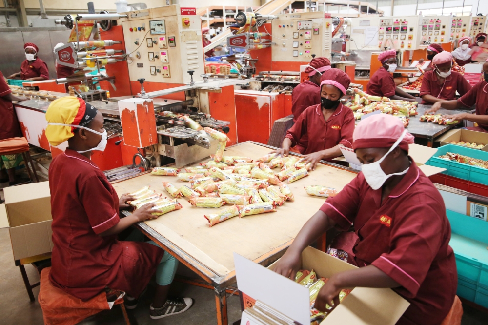 Workers packing biscuits inside a factory at Kigali Special Economic Zone (KSEZ) in May 2021. Rwanda’s economy is projected to grow by 7 per cent in 2024, up from 6.3 per cent in 2023. Photo by Craish Bahizi