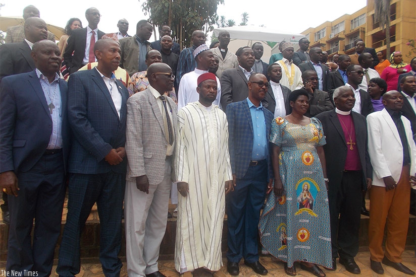 Dr Anicet Nzabonimpa, in charge of reproductive, maternal and child health at RBC, in a group photo with religious leaders. Elias Hakizimana.
