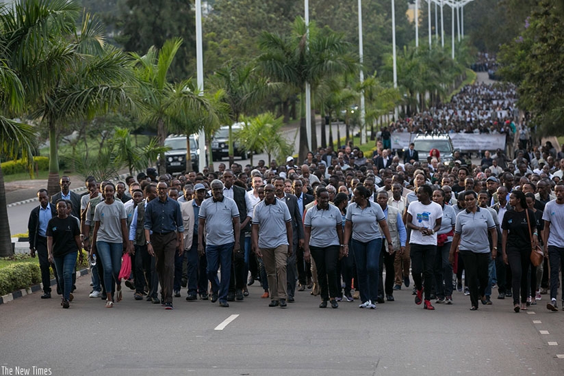 Thousands of Rwandans, diplomats and friends of Rwanda converged at the Parliamentary Building on Friday evening for the annual ‘Walk To Remember’ that saw them walk to the Amahoro National Stadium for the commemoration vigil.