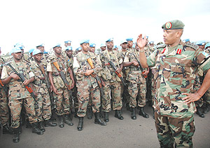 KICUKIRO - A contingent of 155 soldiers of the 35th battalion of the Rwanda Defense Forces (RDF) returned home yesterday, after serving a year in the joint United Nations (UN) and African Union (AU) mission in the troubled Sudanese region of Darfur. This is part of the rotation exercise that started last month. Receiving the troops at Kigali International Airport, senior army officials praised them for their role of bringing back hope and security to people living in North-western Darfur where, their leaders said, they had been instrumental in reducing violence, such as burning of people’s houses and the rape of women.