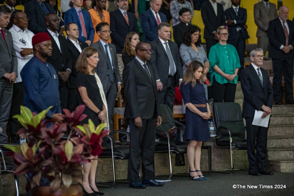 Mourners observe a moment of silence to pay tribute to victims of the Holocaust in Kigali, on January 25. The theme of Holocaust Memorial Day 2024 is the ‘Fragility of Freedom’. Photos Emmanuel Dushimimana