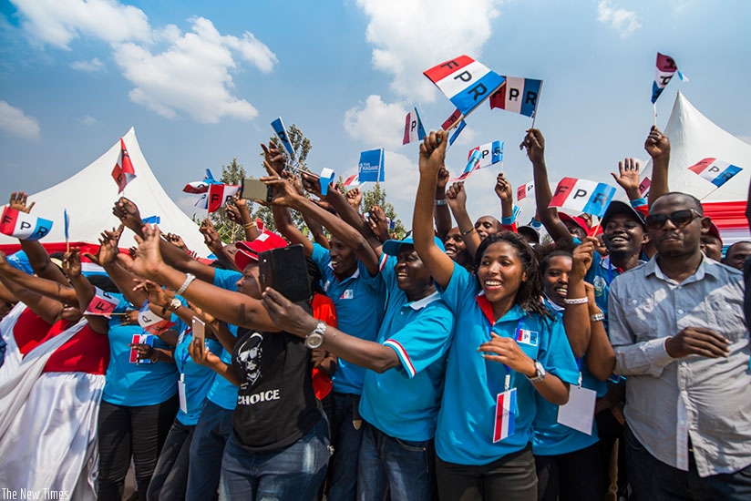 RPF-Inkotanyi supporters cheer Kagame’s arrival in Karongi. Courtesy.