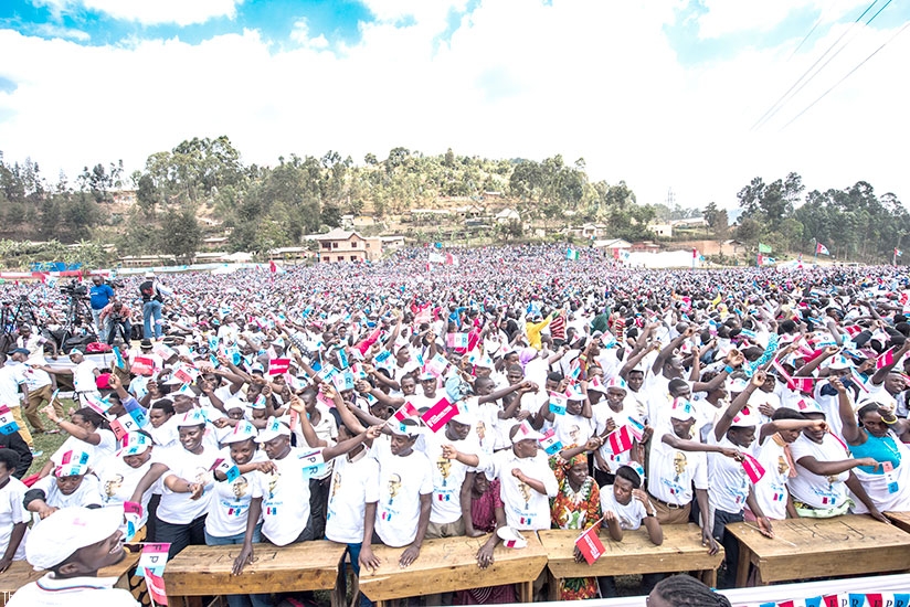 RPF supporters wait for Kagame's arrival in Burera District yesterday. Courtesy.